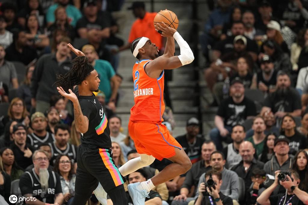 第二节开始时,马刺迅速发动进攻,一度将领先优势扩大至8分,记录到41-33。但雷霆迅速发起反击,强势将比分抹平并一度领先马刺2分。到了小节后半段,马刺开始逐渐缩小分差,争取重新掌控比赛节奏。本节比赛中,雷霆球员亚历山大表现出色,独得11分。第二节结束时,雷霆以60-58领先马刺。