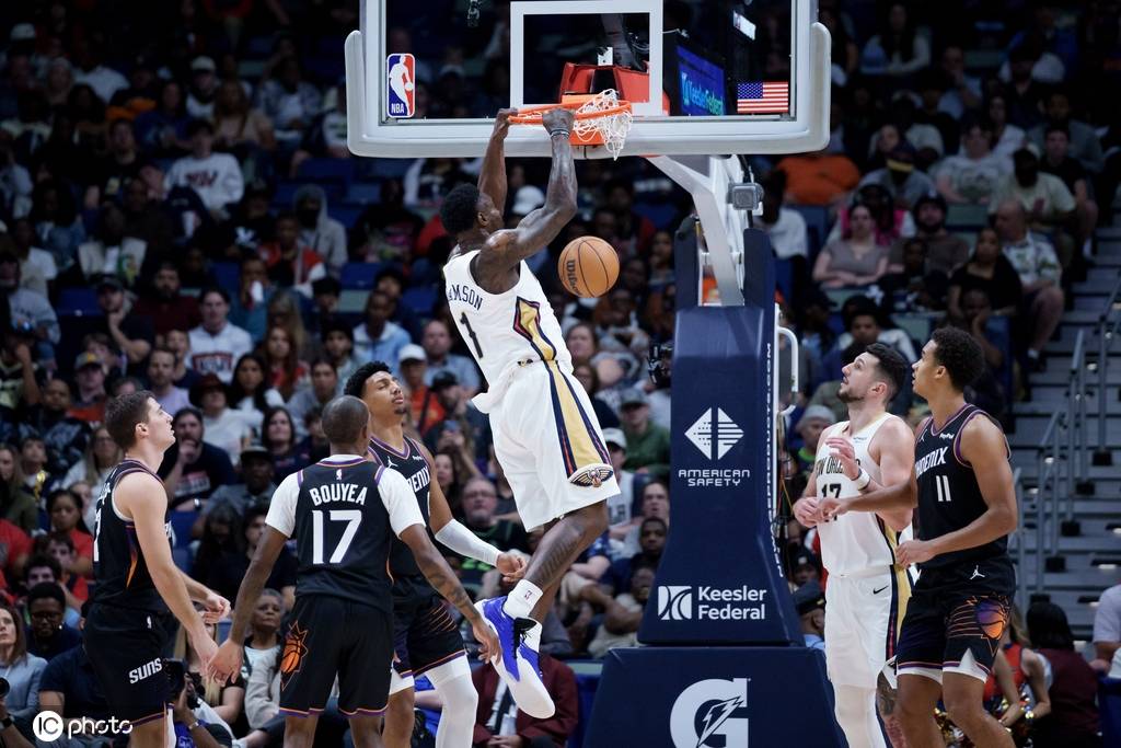 第一节,比赛一开始,鹈鹕迅速通过一次进攻取得2-0的领先。随后,太阳队逐渐找回状态,通过连续得分,不仅抹平了比分,还将差距扩大到7分。随着小节的进行,鹈鹕开始回暖,逐步缩小差距。第一节结束时,太阳以26-23领先鹈鹕。